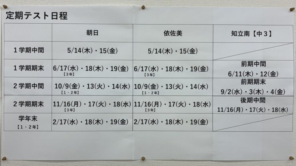 毎年テスト日程を掲示しています。